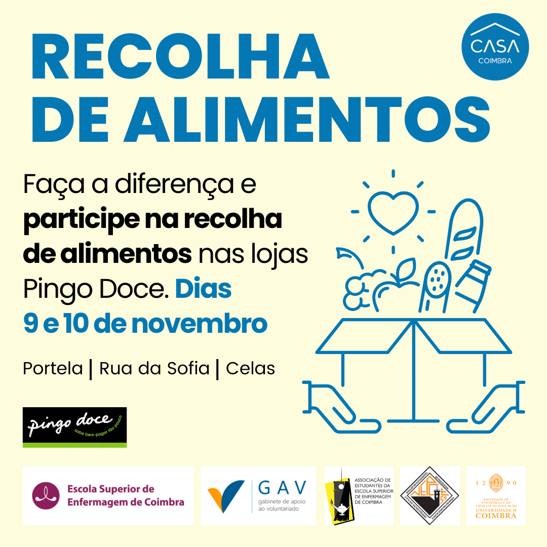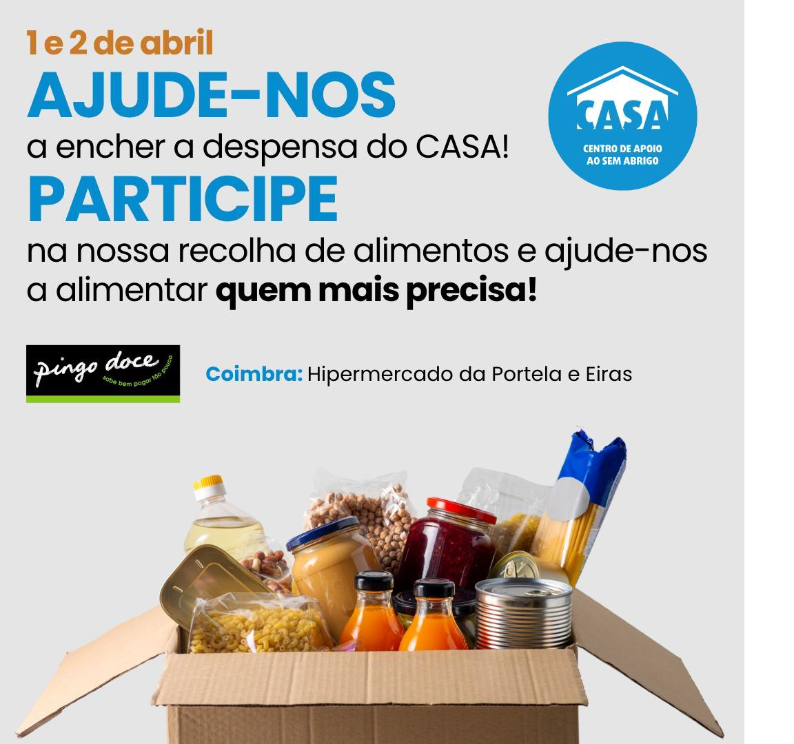 Participa nas recolhas de alimentos nos hipermercados PINGO DOCE em Coimbra, para a nossa Associação CASA Coimbra, nos dias 6 e 7 de Abril.