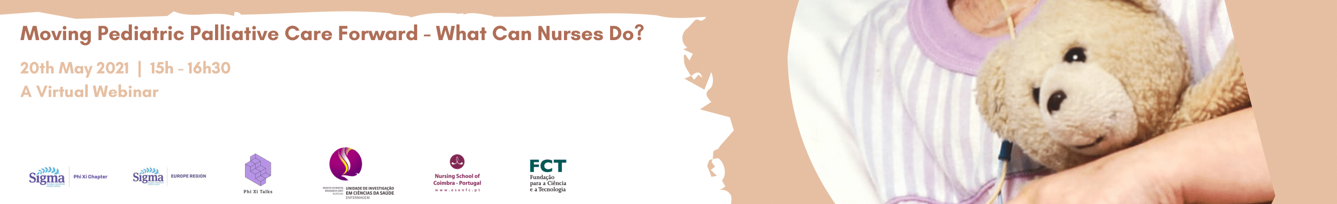 Thus, the Phi Xi Chapter of Sigma Theta Tau International invites all nursing educators, researchers, and practitioners to join the fourth edition of the Phi Xi Talks, titled “Moving pediatric palliative care forward - what can nurses do?”, to discuss the challenges in perinatal/fetal and children palliative care. This webinar is hosted by the Phi Xi Chapter of Sigma Theta Tau's International - STTI, with the support of the Nursing School of Coimbra - ESEnfC and the Health Sciences Research Unit: Nursing - UICISA:E.