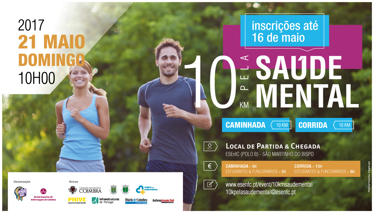 Numa organização conjunta do VII curso de Pós-Licenciatura de Especialidade e V Curso de Mestrado em Enfermagem de Saúde Mental e Psiquiatria, da Escola Superior de Enfermagem de Coimbra realizar-se-á nos próximos dias 20 e 21 de maio, uma iniciativa intitulada: “10km pela Saúde Mental”.