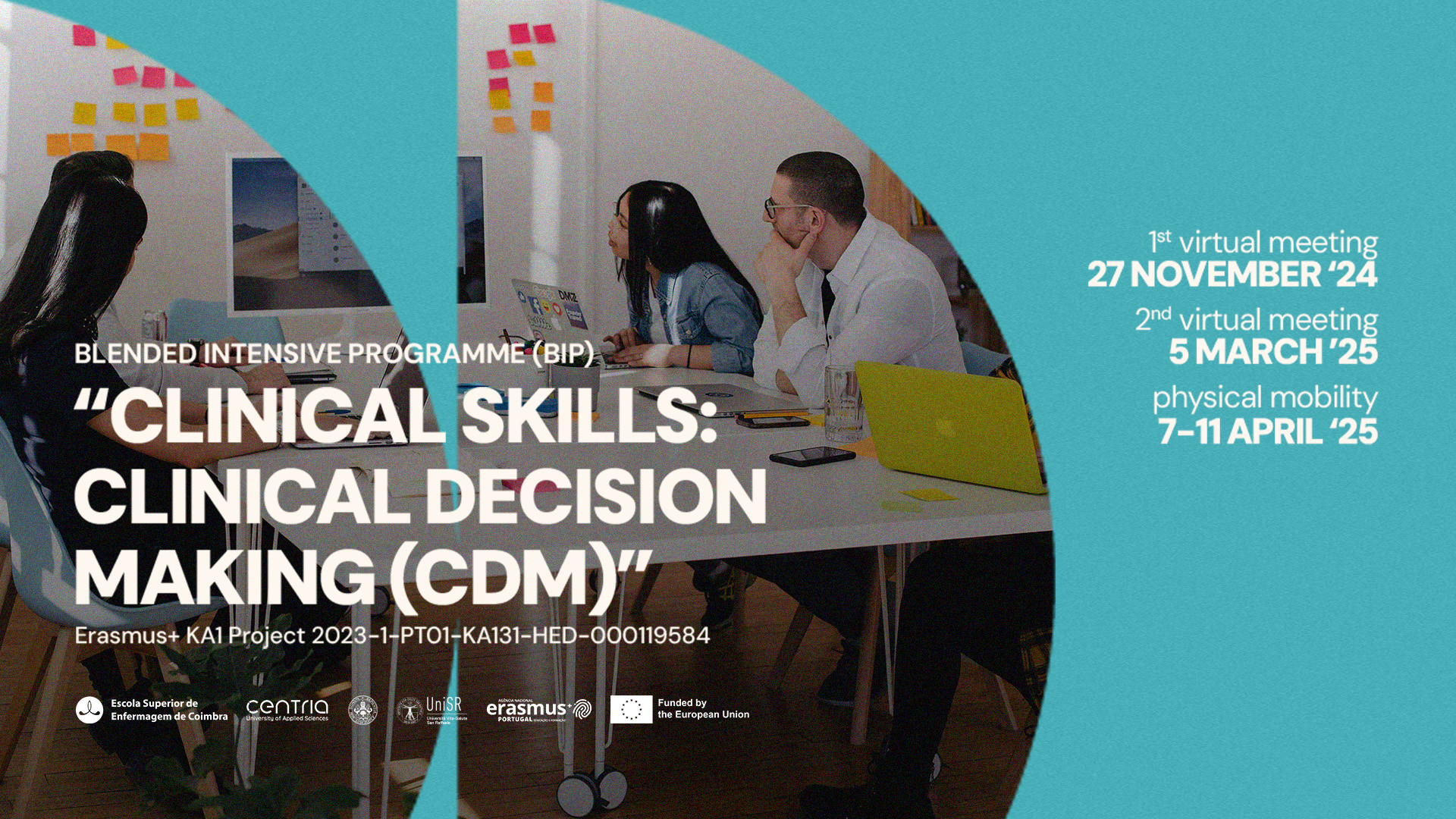 O Blended Intensive Programme (BIP) "Clinical Skills: Clinical Decision Making (CDM)" tem como propósito o desenvolvimento de competências na área da tomada de decisão clínica, integrando aspetos culturais. A atividade iniciou no dia 27.11.2024 com uma componente virtual de aulas online, e apresentação de trabalho em grupos internacionais no dia 5.03.2025. A componente presencial irá decorrer do dia 7 a 11/04/2025, que, para além de aulas, simulação clínica e dinâmicas ativas em grupo, inclui atividades culturais em conjunto com todos os participantes.