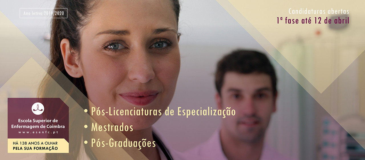 Decorre, até dia 12 de abril, a 1ª fase de candidaturas à frequência dos cursos de mestrado, de pós-licenciatura de especialização e de pós-graduação, com início na ESEnfC em setembro de 2019 e em março de 2020 (ver editais e calendário).