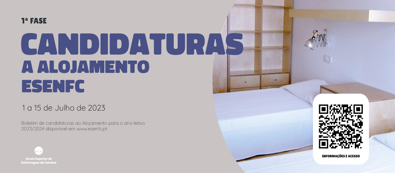 De 1 a 15 de julho de 2023, decorre a 1ª fase de Candidatura ao Alojamento da ESEnfC.