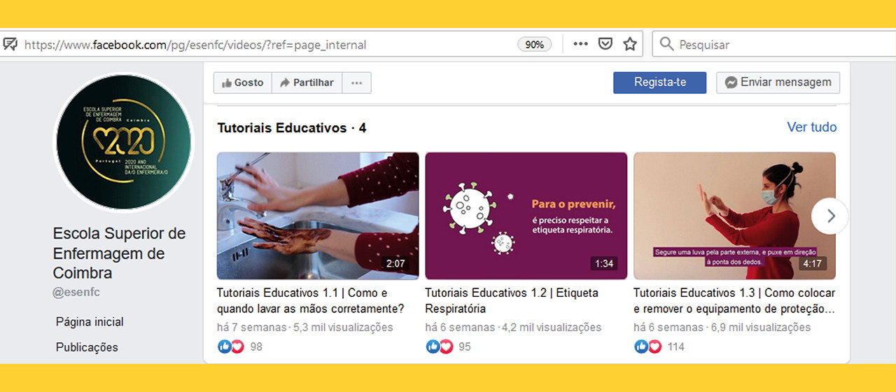Os vídeos estão disponíveis online, quer nas redes sociais (https://www.facebook.com/watch/esenfc/218570779388995/), quer no canal YouTube da ESEnfC (https://www.youtube.com/channel/UCqO2EN0mgxJNyIizTdrEqwQ), quer, ainda, na página web da CASES (www.cases.pt/voluntariado/covid-19).