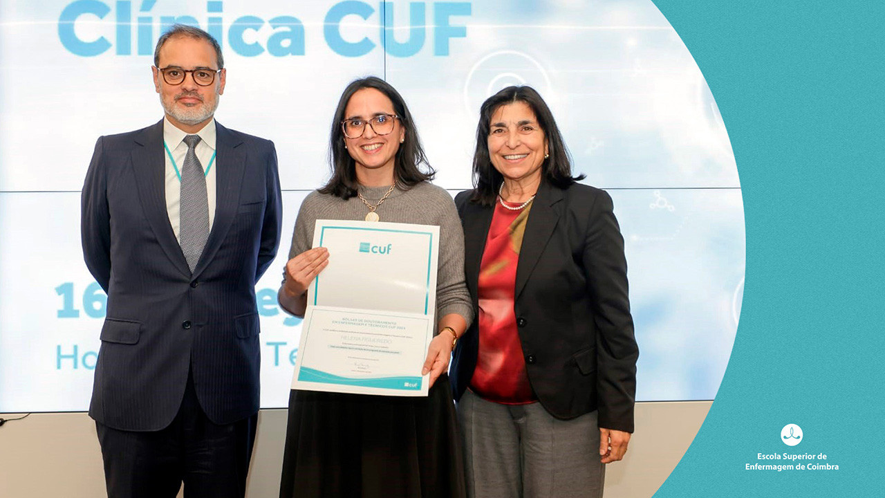 A estudante do programa de doutoramento em Enfermagem ministrado pela Universidade de Coimbra (UC) em associação com a Escola Superior de Enfermagem de Coimbra (ESEnfC), Helena Figueiredo, é um dos vencedores das Bolsas de Doutoramento CUF 2024.