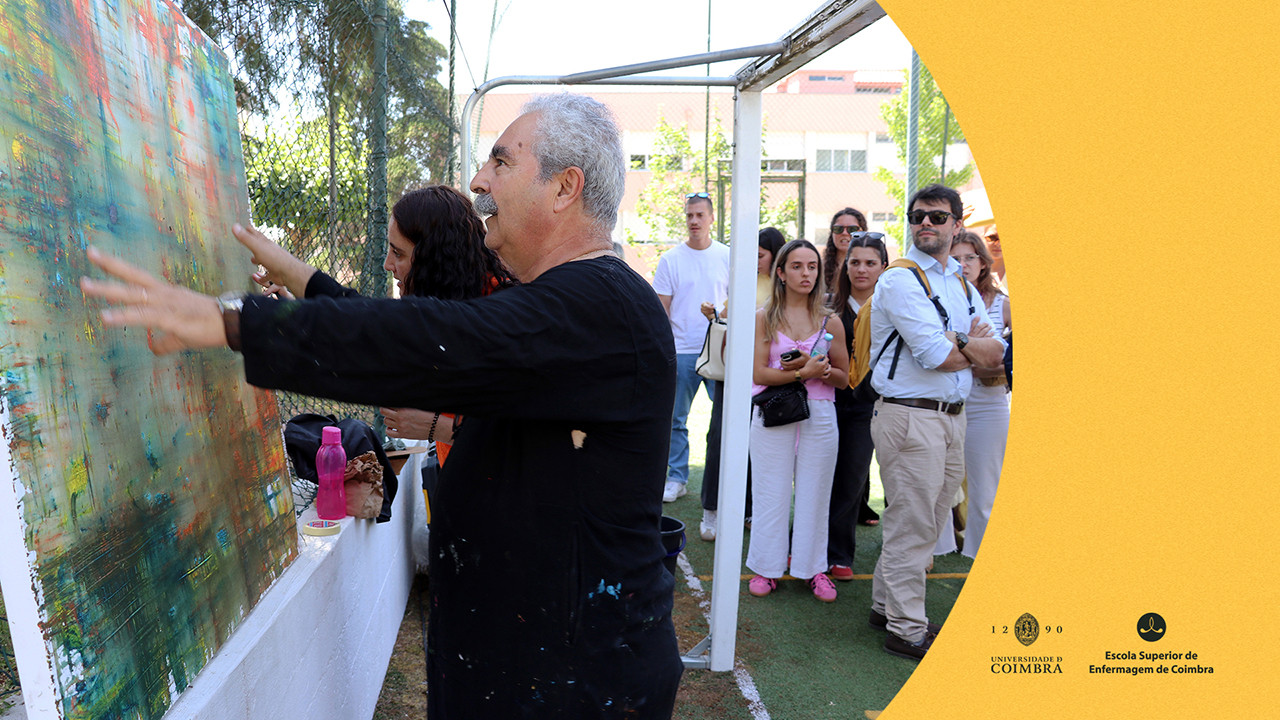 Estudantes finalistas do curso de licenciatura em Enfermagem 2021-2025 colaboraram, no passado dia 9 de julho, na “construção coletiva” de uma obra de pintura assinada pelo artista plástico conimbricense Victor Costa.