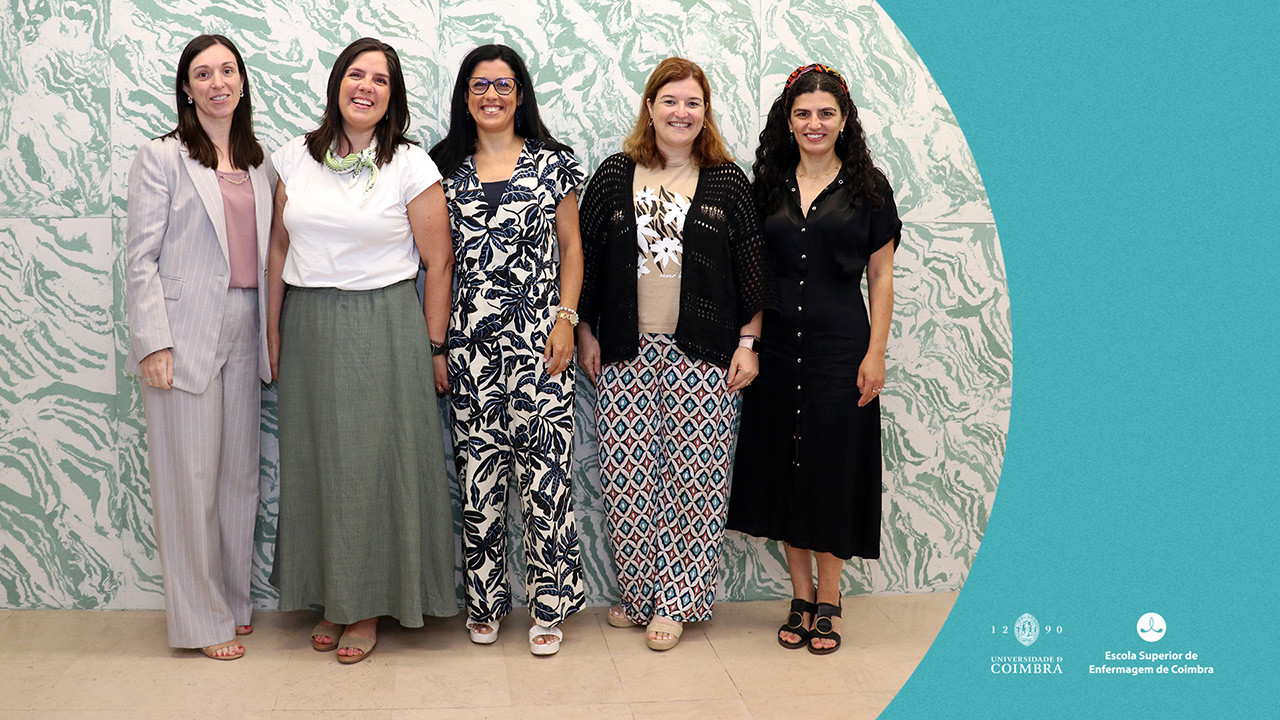 Tânia Marisa Pinto Rodrigues, Joana Sofia Dias Pereira de Sousa, Maria Leonor Gonçalves de Carvalho, Andreia Filipa de Sousa Félix e Ana Sofia Campos Nabais (da esquerda para a direita na foto) finalizam a lista de 16 professores adjuntos admitidos, este ano, na Escola Superior de Enfermagem de Coimbra (ESEnfC) para suprir as necessidades sentidas ao nível da lecionação após várias aposentações, sobretudo no último triénio.